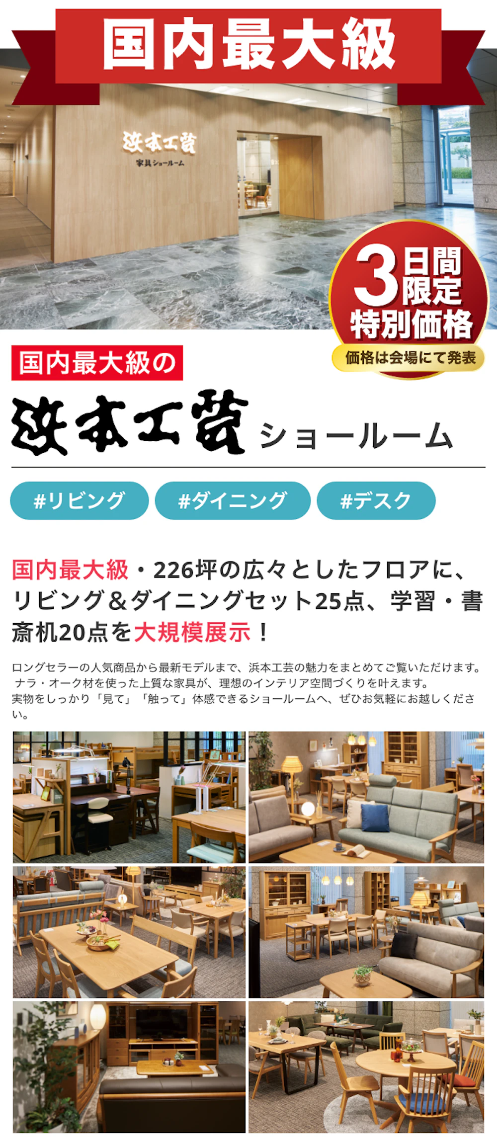 | 開催場所 | 浜本工芸 横浜ショールーム (神奈川県横浜市保土ケ谷区神戸町134 横浜ビジネスパーク サウスタワー1階) |