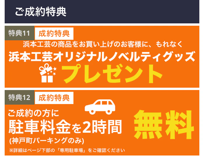 | 専用駐車場 | 有り/93台(横浜ビジネスパーク駐車場) ※30分/250円上限なし(当イベントでの駐車券のサービスはございません) ※車両制限:車高2,100mm/車幅2,100mm/車長5,800mm/重量2,000kg 「神戸町パーキング」に限り、ご成約の方に、駐車料金を最大2時間無料サービス致します。 ※SRのある横浜ビジネスパークビル向かいの平場駐車場「神戸町パーキング」に限ります。(神奈川県横浜市保土ケ谷区神戸町112)(平置き駐車場、出入り口はゲート式、高さ制限はありません) ※他の駐車場(横浜ビジネスパーク駐車場など)についての駐車料金を無料サービスは行っておりませんので、ご注意ください。詳細についてはお問い合わせください。 |