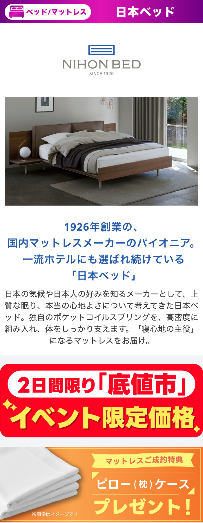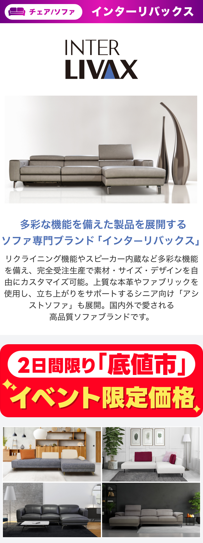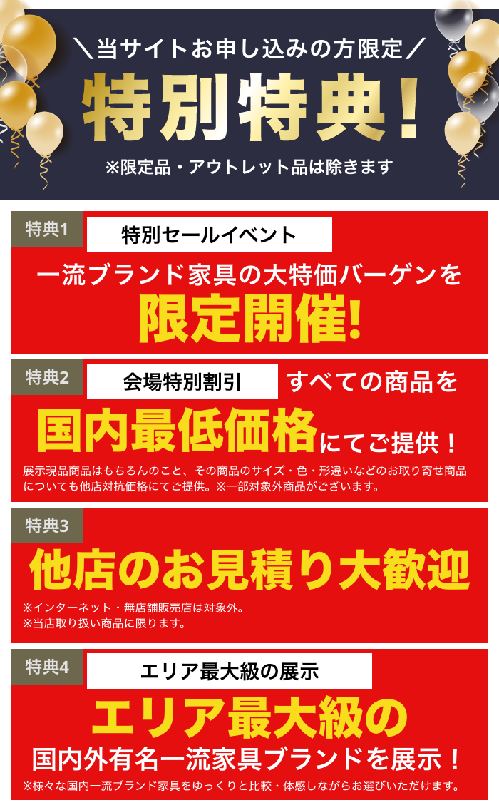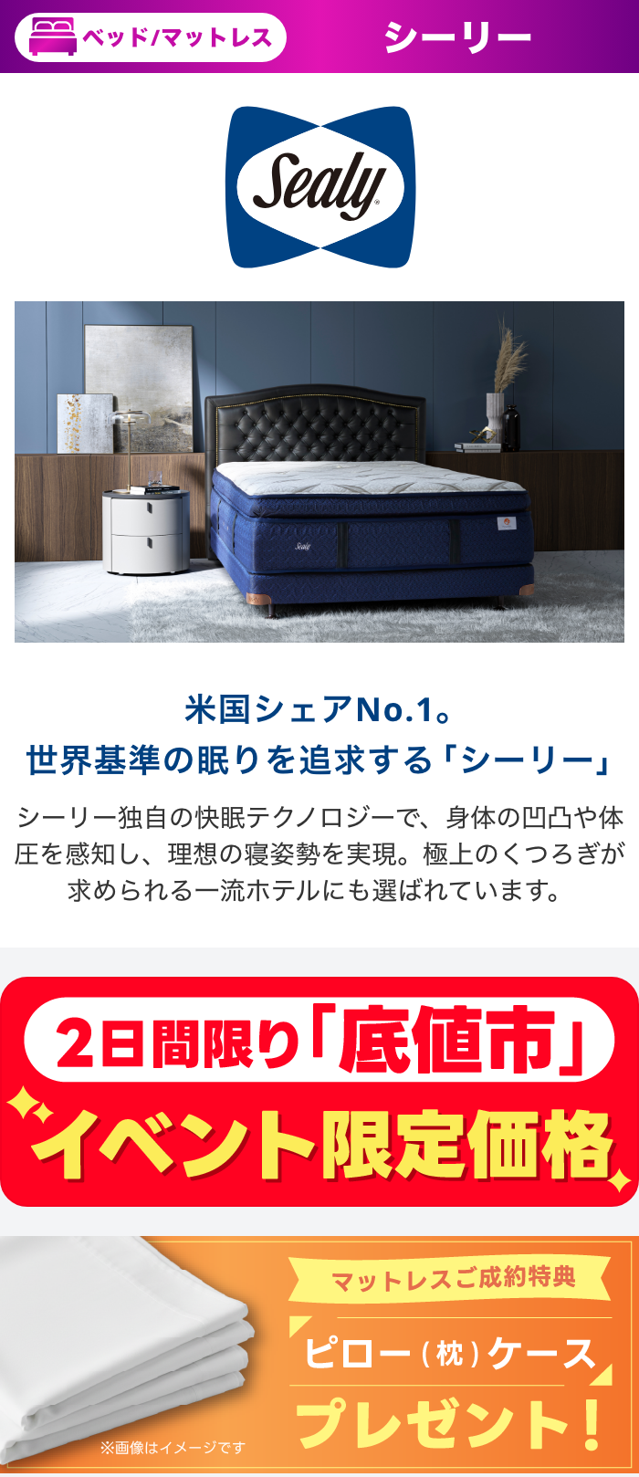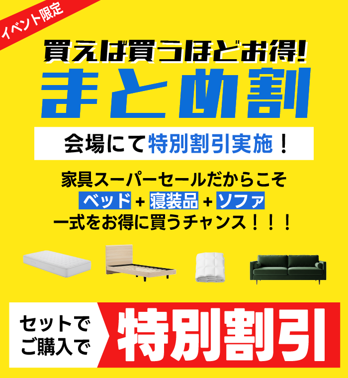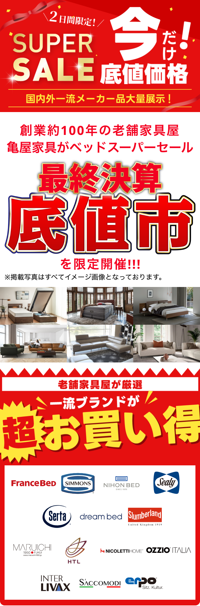 | 取扱商品 | 家具全般 ベッド・マットレス 布団・寝装品 |