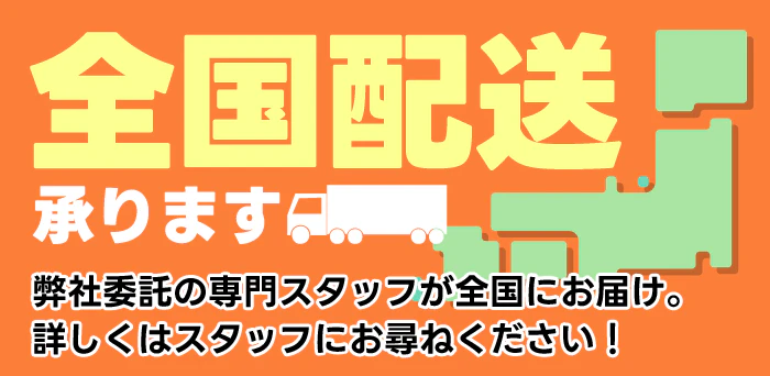 | 配送 | 特別価格にて、配送いたします。 ※弊社指定の首都圏エリア(東京都・神奈川県・千葉県・埼玉県)に限る ※当該地域内でも一部地域及び離島は除きます。尚、その他地域についてはお問い合わせ下さい。 |