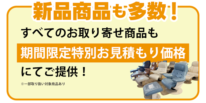 | 不用品のお引き取り | 特別価格にて承ります。 ※お買上げ商品1点毎の同等品、また引き取り先とお届け先は同一場所に限ります。 ※49,800円(税込)以上ご成約の場合に限ります。 |