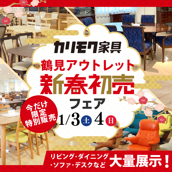 神奈川県横浜市鶴見にある「カリモク鶴見アウトレット」にて、『新春初売りフェア』を期間限定で開催致します。