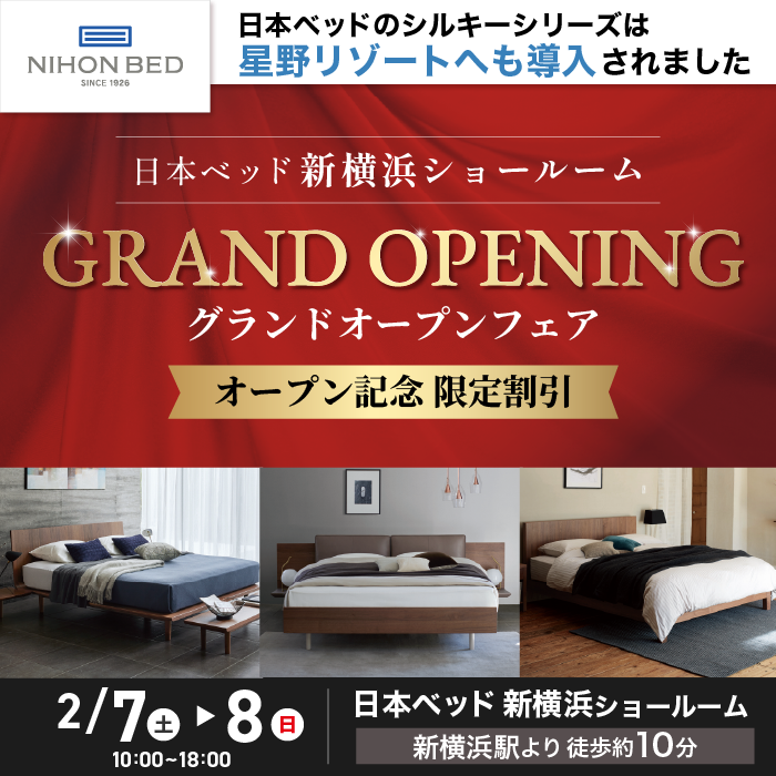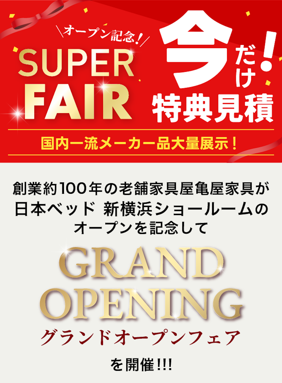 創業約100年の亀屋家具が『日本ベッド 新横浜ショールームグランドオープンフェア』を期間限定にて開催!