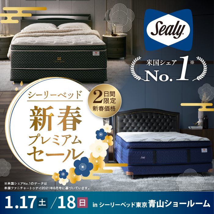 東京都港区北青山にある「Sealy Bed 東京ショールーム(青山)」にある特設会場にて、創業約100年の老舗家具屋 亀屋家具が『シーリーベッド 歳末プレミアムセール』を期間限定にて開催!
