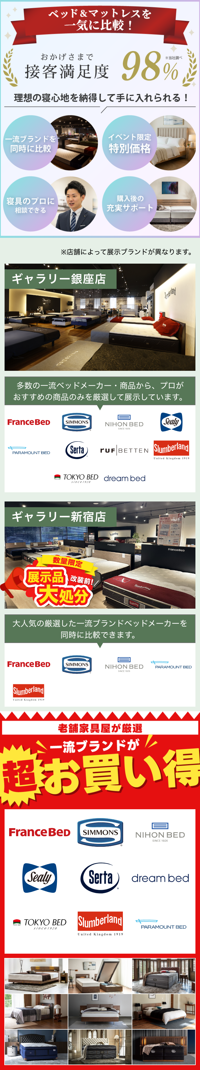 | 専用駐車場 | ギャラリー銀座店 「新京橋駐車場」に限り、10万円以上ご成約の方に駐車料金を無料サービス致します。 ※最大2時間まで ------------------------------------------------------------ ギャラリー新宿 「新宿3丁目イーストビル駐車場」に限り、10万円以上ご成約の方に駐車料金を無料サービス致します。 ※最大2時間まで |
