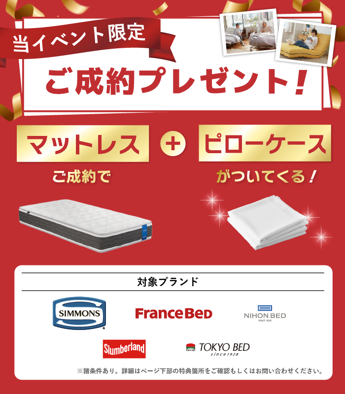 マットレスご成約で、「ピロー(枕)ケース」プレゼント!