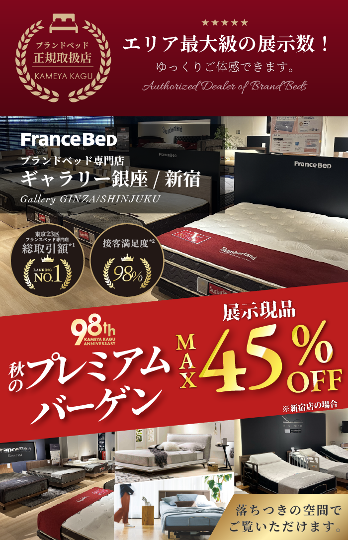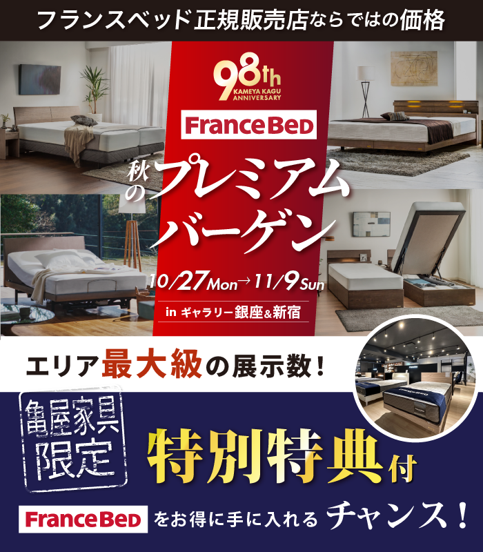 フランスベッドのすべてのマットレス・ベッドフレーム・電動リクライニングベッド・羽毛布団・寝装品を「特別価格」にてご提供!