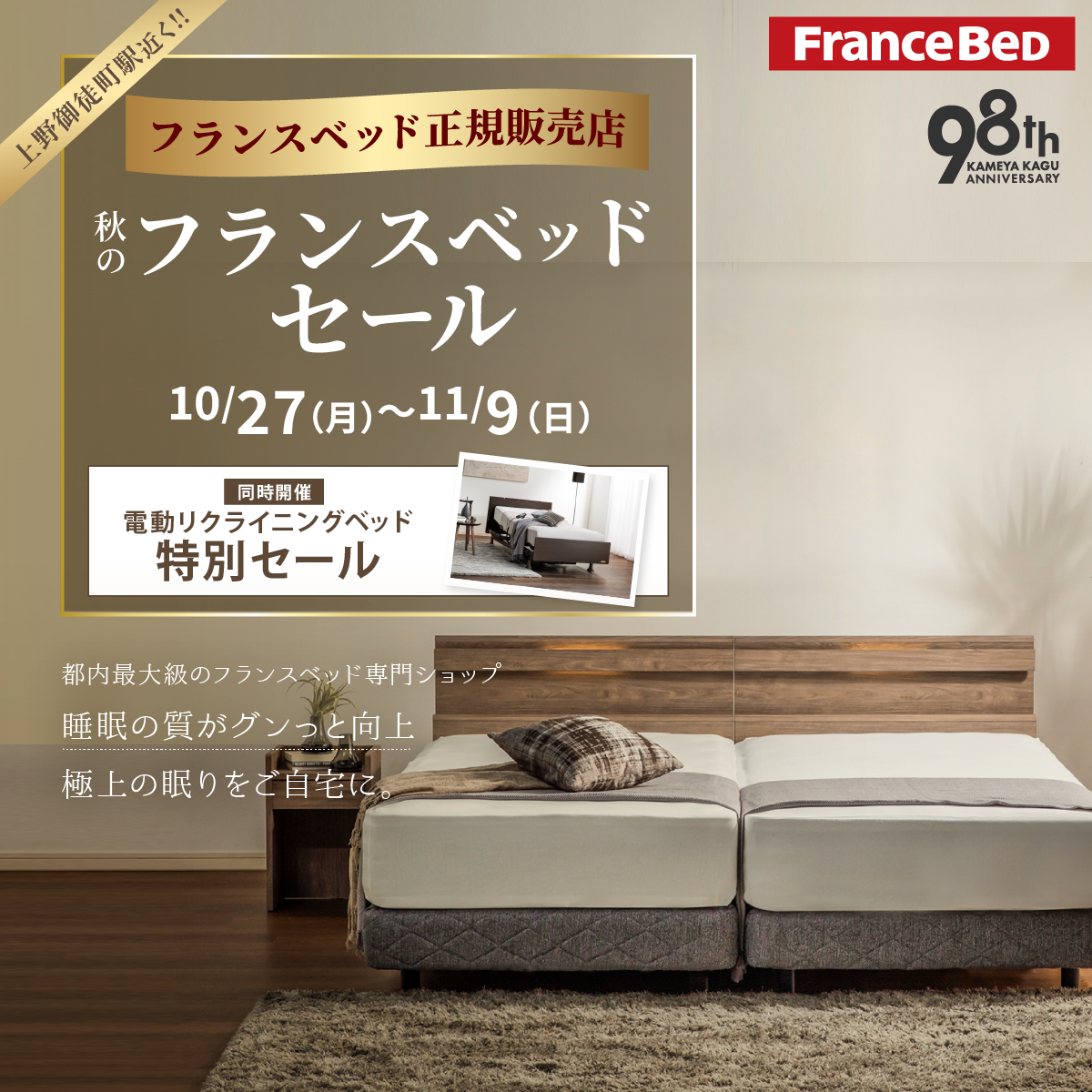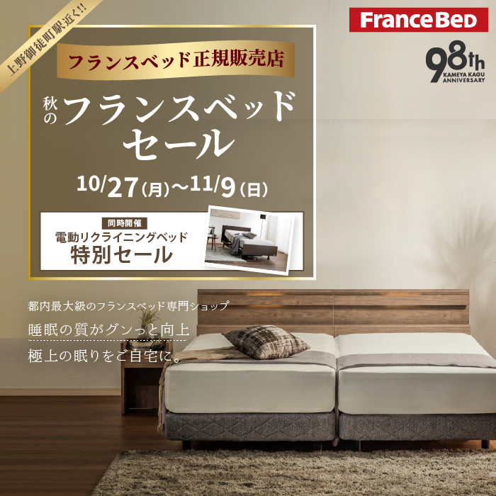 フランスベッドのすべてのマットレス・ベッドフレーム・電動リクライニングベッド・羽毛布団・寝装品を「特別価格」にてご提供!