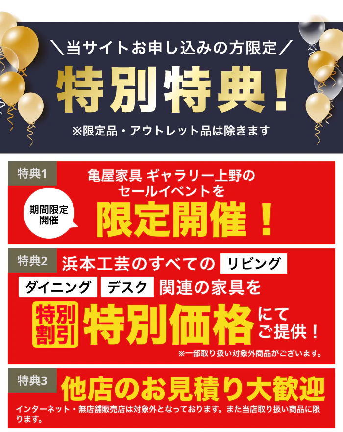 ※お買上げ商品1点毎の同等品に限り、不要家具を特別価格にて処分します。 ※引き取り先とお届け先は同一場所に限ります。 |