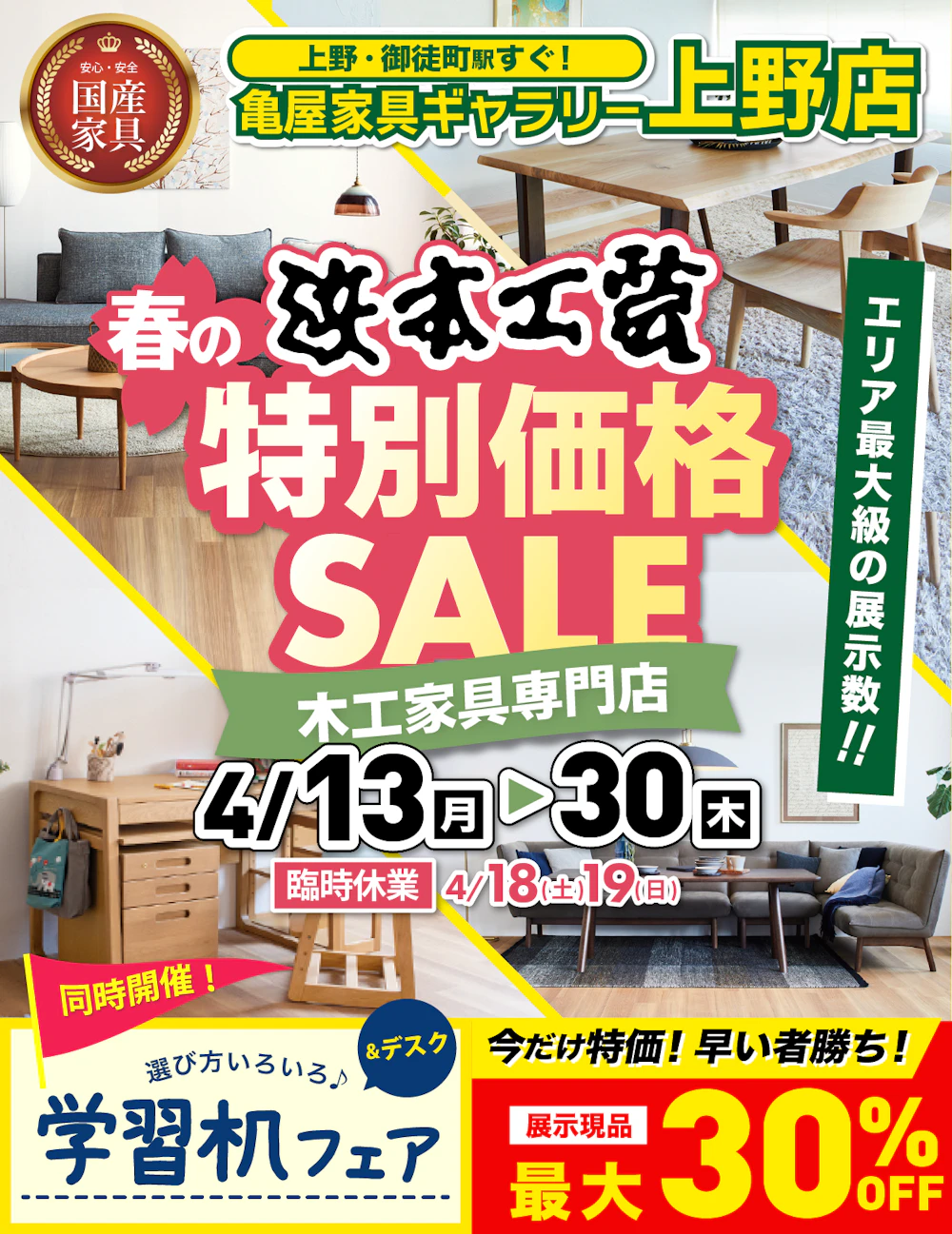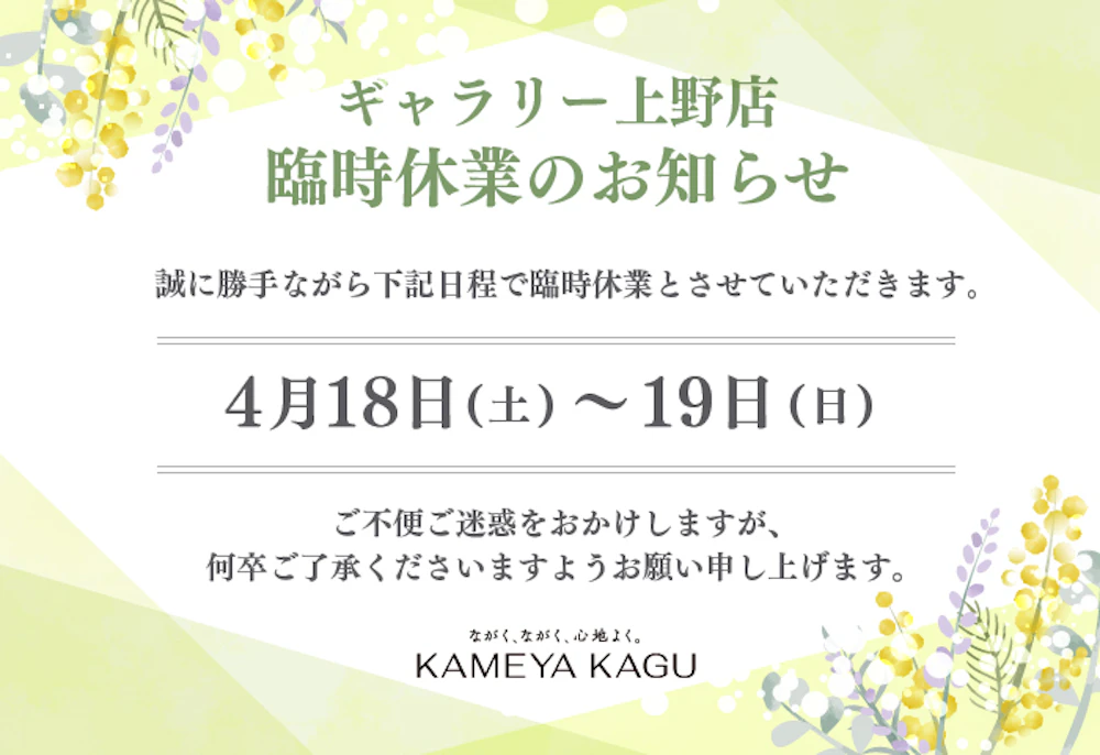 | 開催日 | 04月13日(月) ~ 04月30日(木) ※04/17(金)と04/18(土)はお休みです |