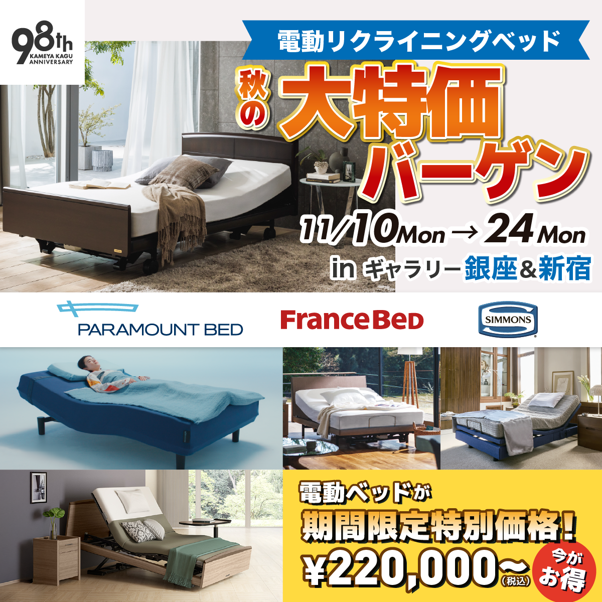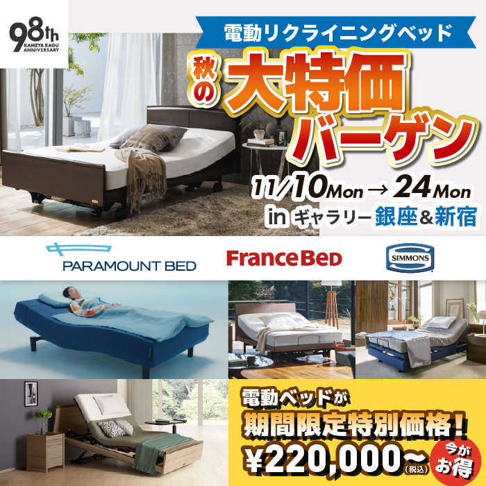 一流ベッドブランドのすべての電動リクライニングベッド・羽毛布団・寝装品を「特別価格」にてご提供!
