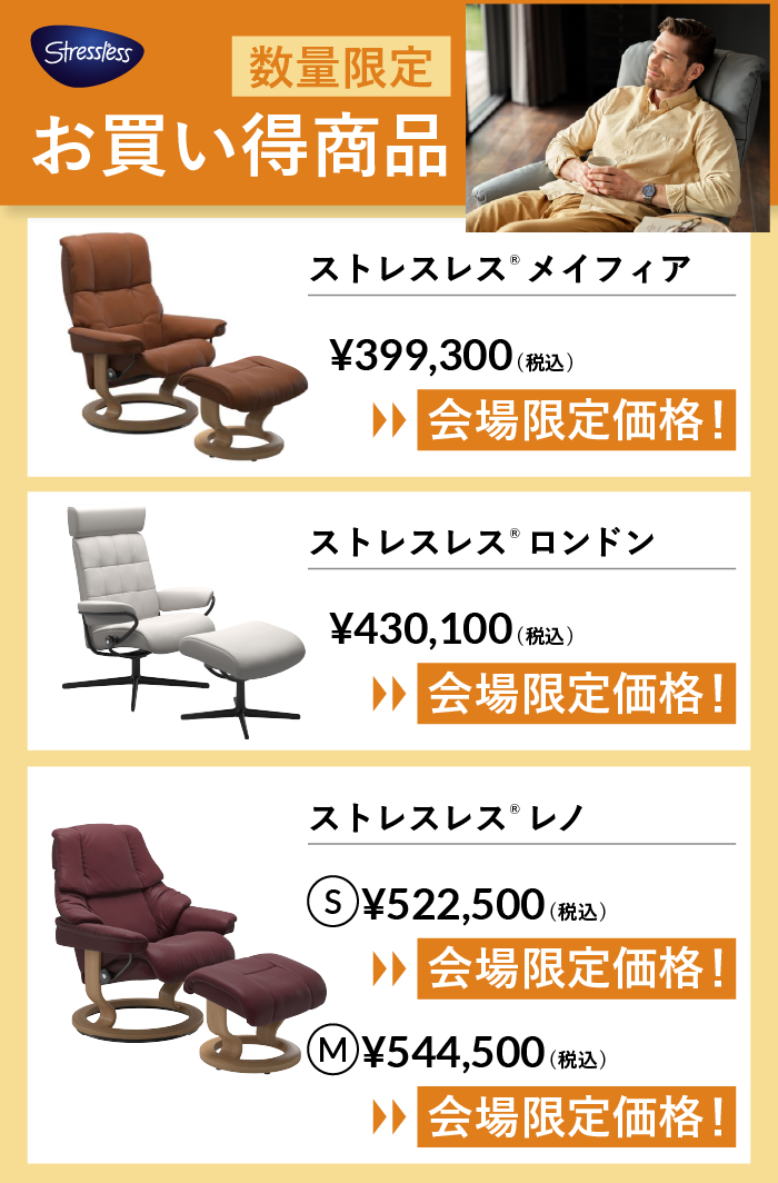 エコーネス社の「ストレスレス®」リクライニングチェア・ソファ・ダイニングを「イベント限定の特別価格」にてご提供!
