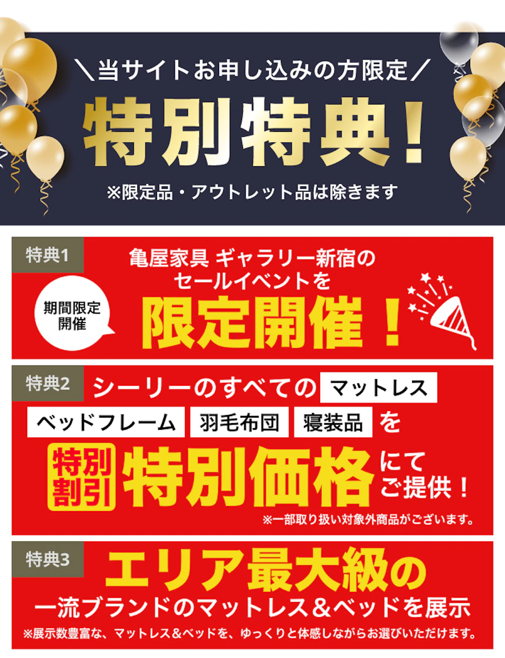 ※お買上げ商品1点毎の同等品に限り、不要家具を特別価格にて処分します。 ※引き取り先とお届け先は同一場所に限ります。 |