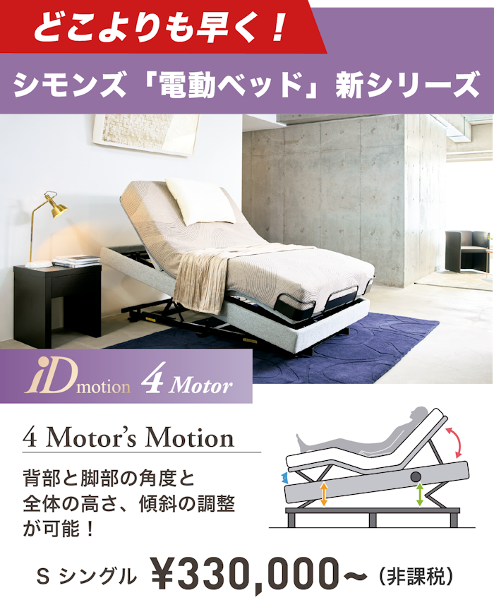 「シモンズ」の電動ベッドIDモーションご成約で、「ロゴ入りマルチクッション」プレゼント!